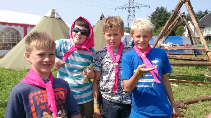 I dag byggjer me leir. Me har nettopp ete lunsj på (nesten) ferdige bord. Seinare skal me byggja portal og anna nyttig.